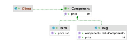 - client 클래스는 leaf와 composite클래스를 직접 참조하지 않고, 공통 인터페이스 component만 참조