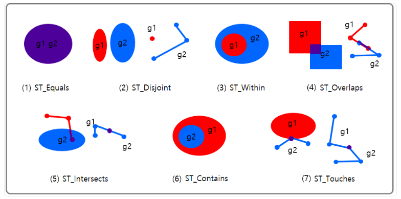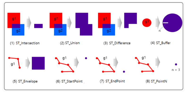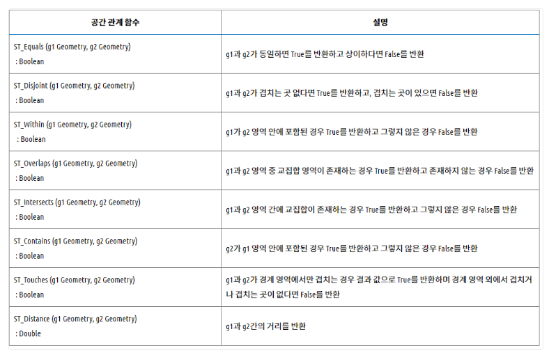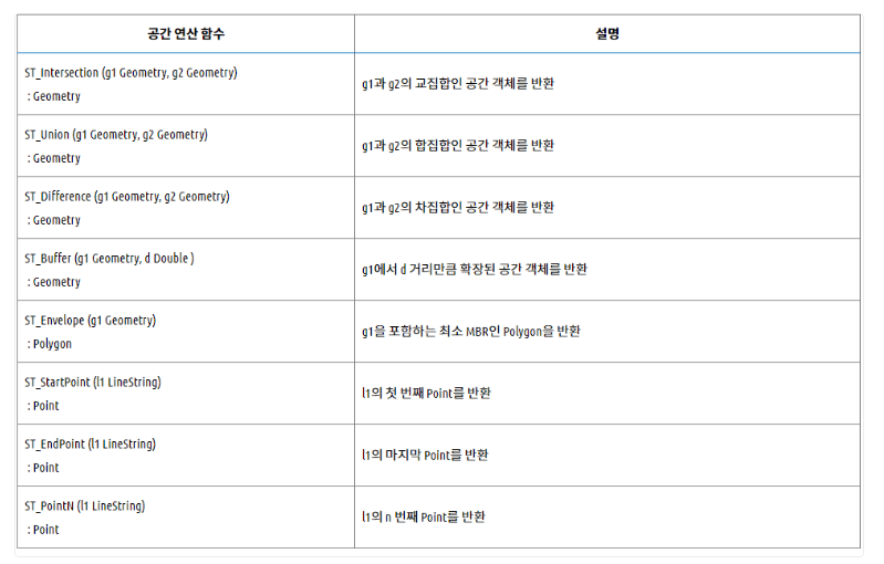- 해당 데이터 타입은 점, 선, 다각형 등의 기하학적 개체를 저장하고 쿼리하는데 사용된다.