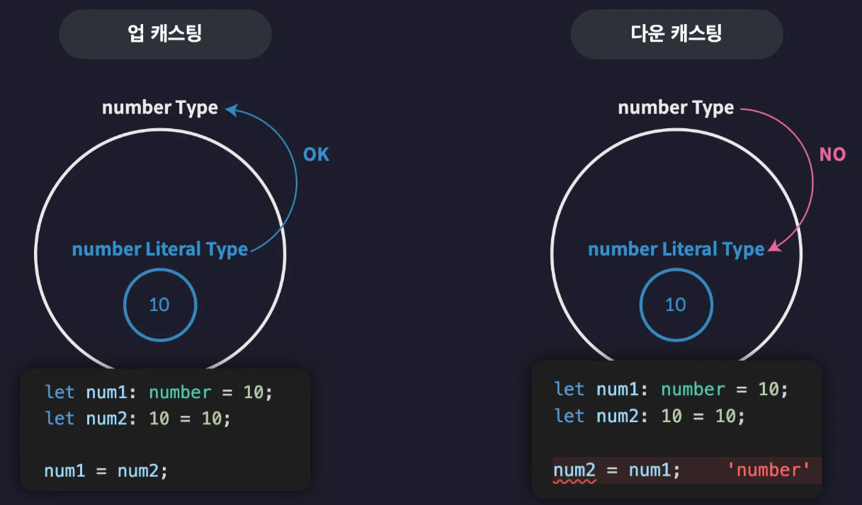 모든 Number Literal 타입은 Number 타입이라는 거대한 집합에 포함되는 부분 집합으로 볼 수 있다.