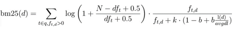 - BM25에서는 문서의 평균 길이(avgdl)를 계산에 사용하며, 문서의 길이가 검색 점수에 영향을 덜 미친다.