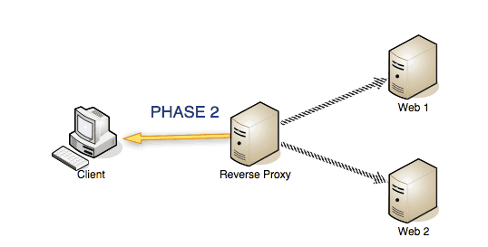 클라이언트가 서버에 요청하면, 프록시 서버가 배후 서버(응용프로그램 서버)로부터 데이터를 가져옴
